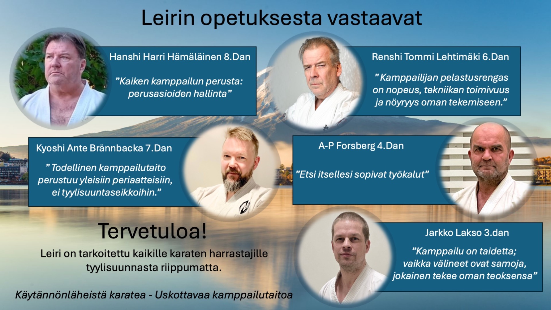 Tapahtumaan ovat tervetulleita kaikki karaten harrastajat tyylisuunnasta ja vyöarvosta riippumatta. Ikäraja leirille on 15 vuotta.